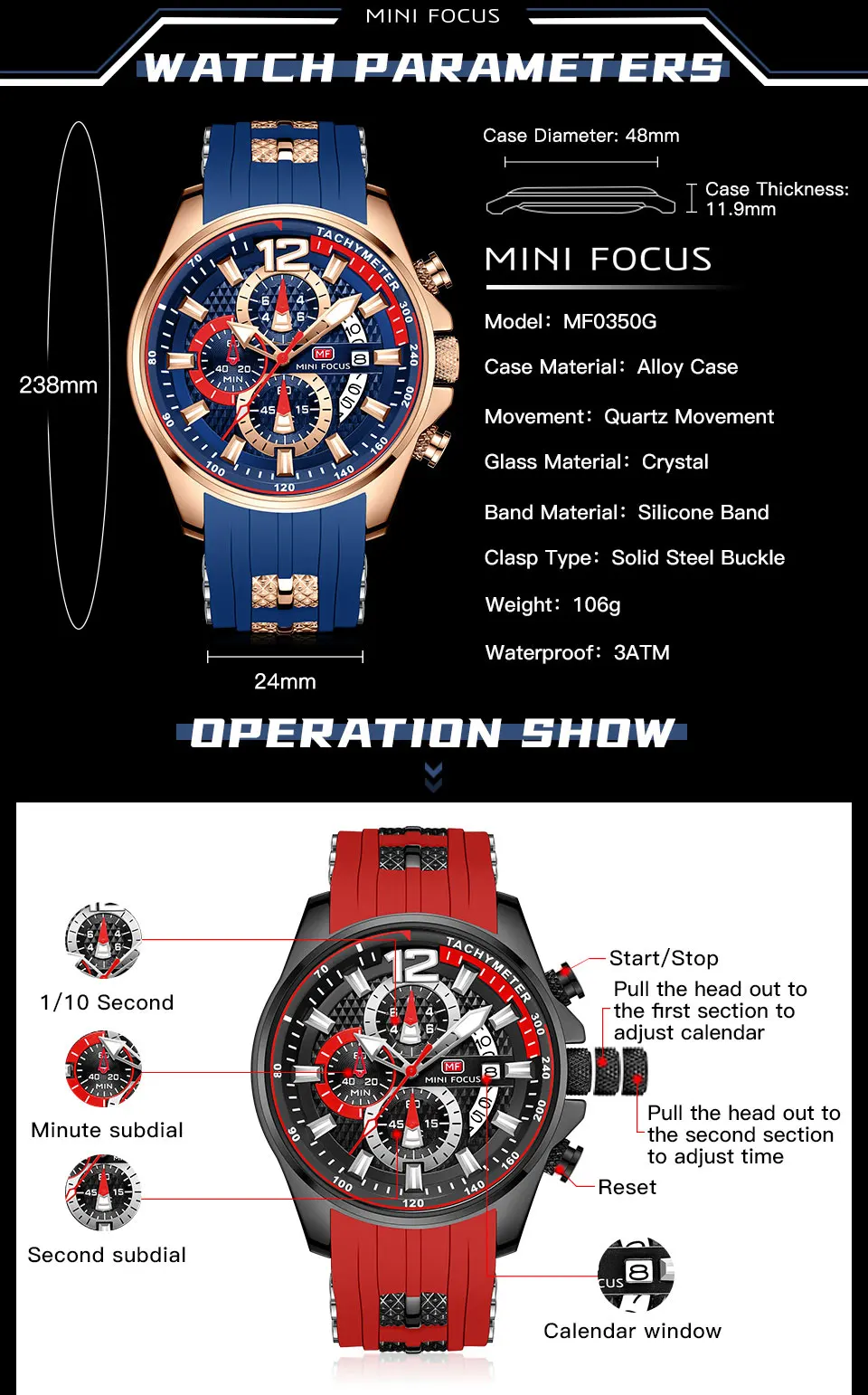 Water Resistance Depth: 3Bar