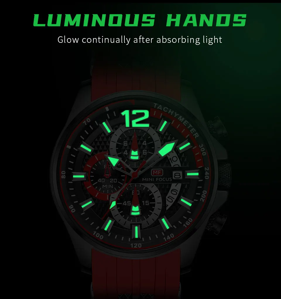 Feature: Stop Watch,Chronograph,Complete Calendar,Water-Resistance,Luminous Hands